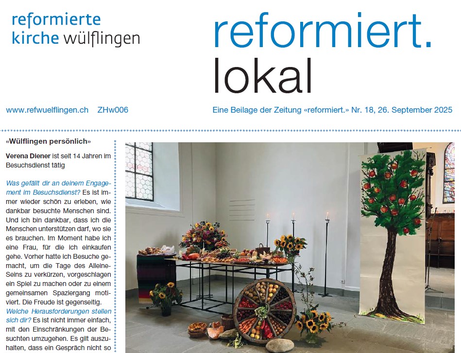 Willkommen auf der Homepage der Reformierten Kirchgemeinde Wülflingen. Wir freuen uns, dass Sie uns besuchen, und stellen uns Ihnen auf unseren Seiten gerne vor: Wir sind eine lebendige Gemeinde, die einiges in Bewegung bringt, Bewährtes vertieft und Neues wagt – auch mit Ihnen. Sie finden bei uns ein vielfältiges Angebot.